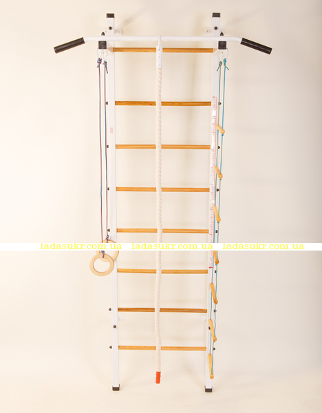 Шведская стенка с деревянными перкладинами Кипарис отличается от других шведских стенок именно перекладинами. Деревянные перекладины, как нельзя к стати для деской шведской стенки: всегда теплые, нескользящие. Шведская стенка Кипарис подходит для использования для детей с самого раннего возраста 1,5-2 года. Ребенок быстро научится лазить по шведской стенке, веревочной лестнице, кататься или кувыркаться на кольцах. Родители также смогут использовать шведскую стенку как турник. Габаритные размеры шведской стенки: 2270*660*580мм. Крепление только к стене. 8 точек крепления.